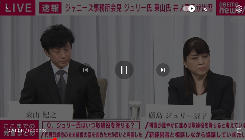2時間半以上も続いているジャニーズ事務所記者会見。