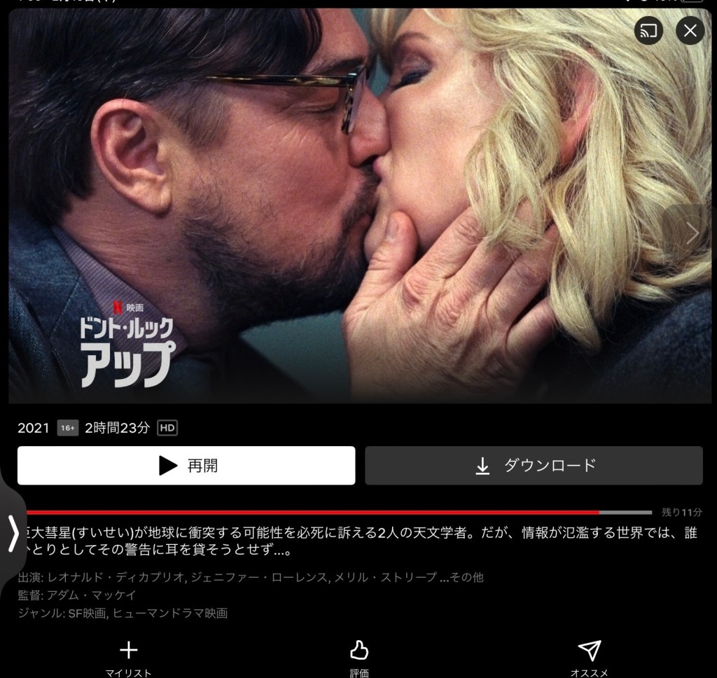 Don’t Look Up! 2021年の作品です。Netflixで視聴できる。