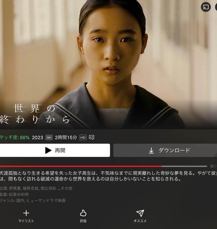 ほんと、みなさん、『世界の終わりから』はいい映画なの。