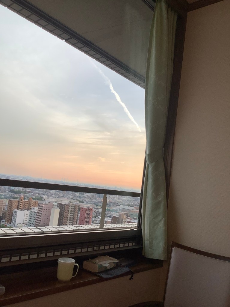 病室は高層ビルの上階ですから、窓からの風景は悪くないです