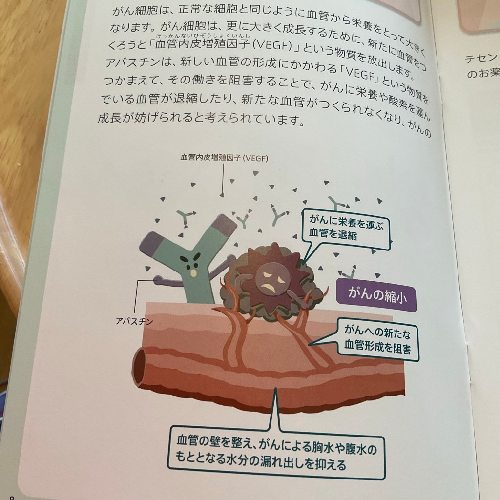 ガン細胞は、正常な細胞と同じように血管から栄養をとって大きくなり、更に大きく成長しようと「血管内皮増殖因子」VEGFを放出します。