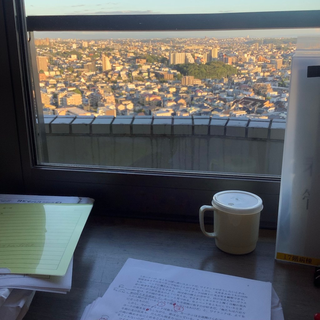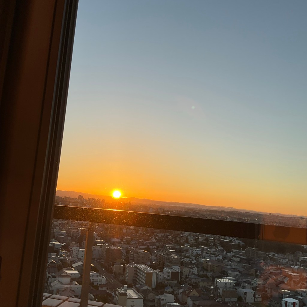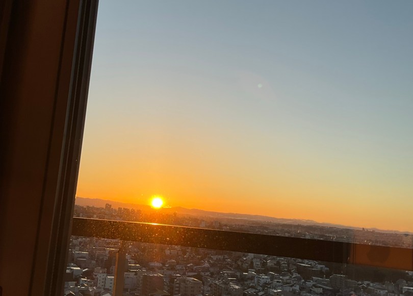 下の写真は病室から見えた朝陽。夜明けの風景。