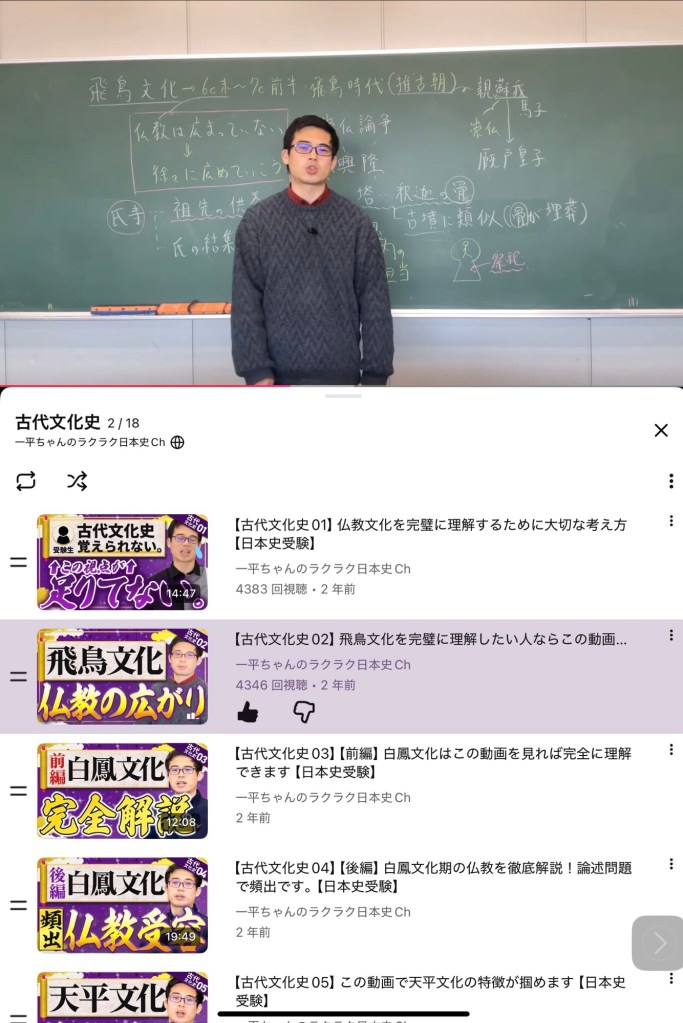 で、この際だから、この田中一平先生の講義動画を全部視聴することに決めた。日本史の原始時代から現代まで、全部視聴することにした。