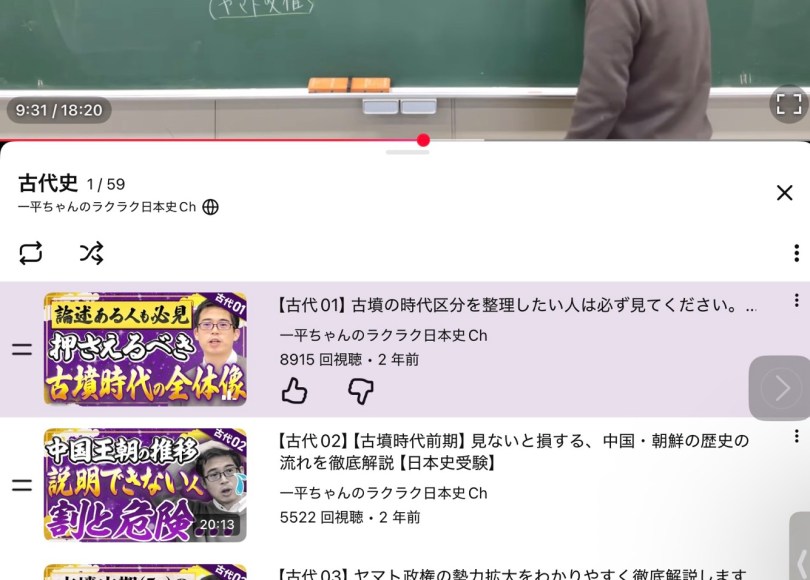 で、この際だから、この田中一平先生の講義動画を全部視聴することに決めた。日本史の原始時代から現代まで、全部視聴することにした。