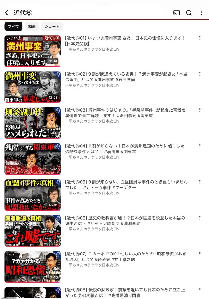 さ、私はまたお気に入りのYouTube「一平ちゃんのラクラク日本史チャンネル」を視聴します。