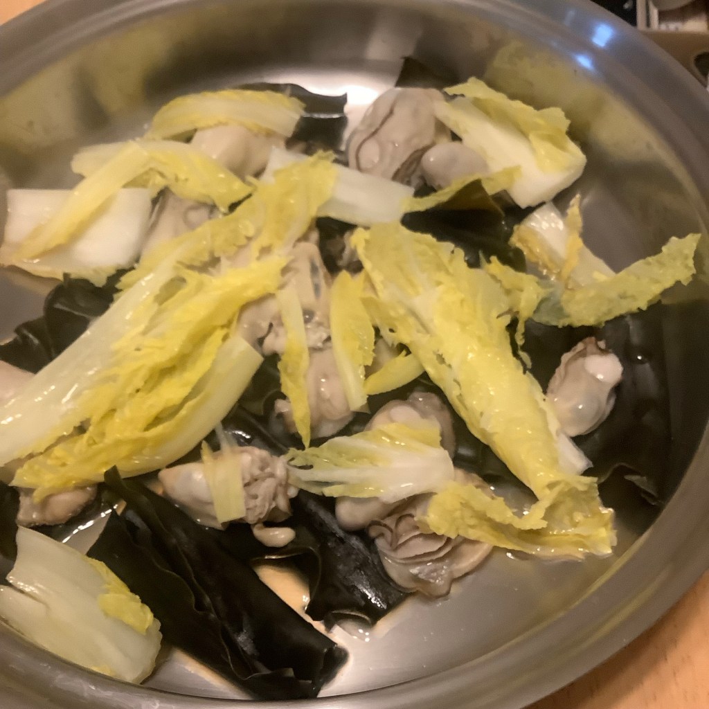 大晦日は、夕方から早々と入浴して、お節料理代わりのおでんも作っちゃって、夕食は昆布敷き詰めて、その上に牡蠣並べて白菜ちょっと乗せてお酒振って酒蒸しの夕食を終えた。ポン酢でいただきます。これ簡単でいいよ。今冬の牡蠣は小さいけど。