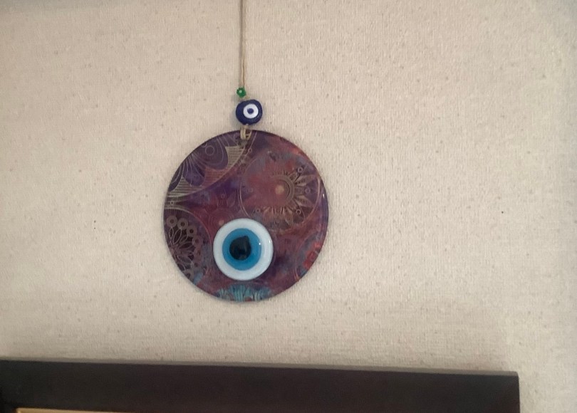 魔除けもしてる。トルコのナザールボンジュウだぞおおお〜〜